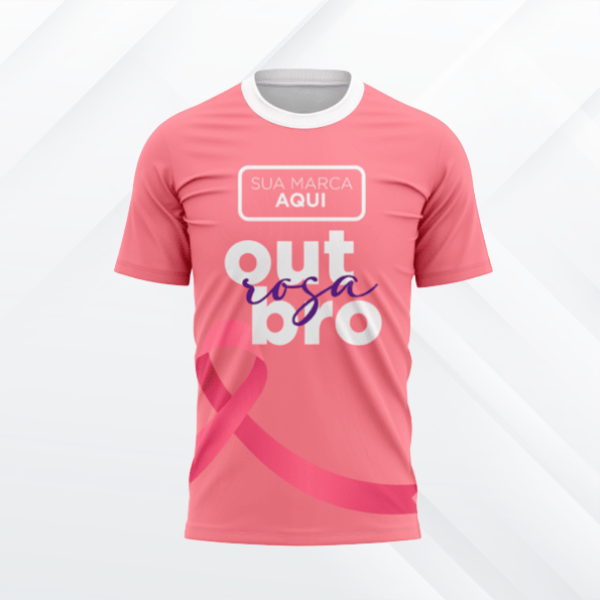 Camiseta promocional Outubro Rosa em tecido leve e confortável, ideal para campanhas de conscientização e eventos. Personalize e vista a causa com estilo e propósito.