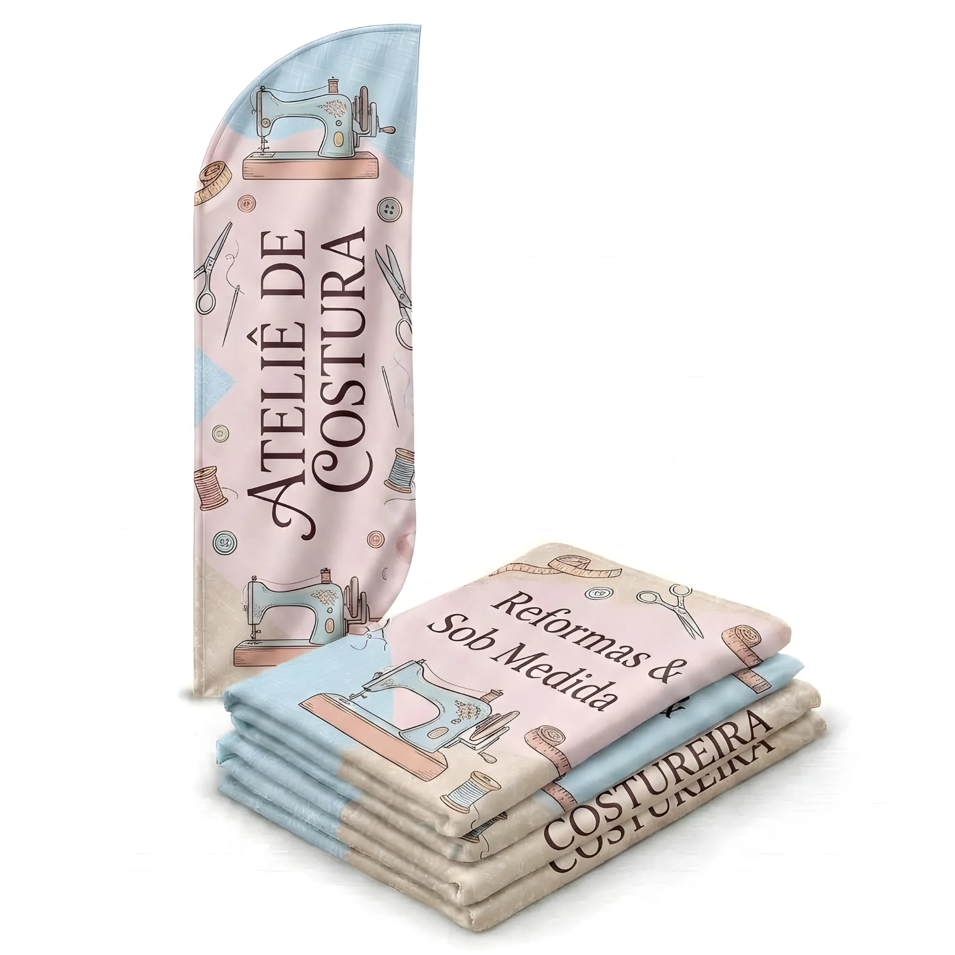 O tecido do seu wind banner é composto por 100% poliéster, produzido em impressão sublimática Ultra HD, qualidade Epson. Resistente ao tempo, você pode lavar o tecido e até passar.