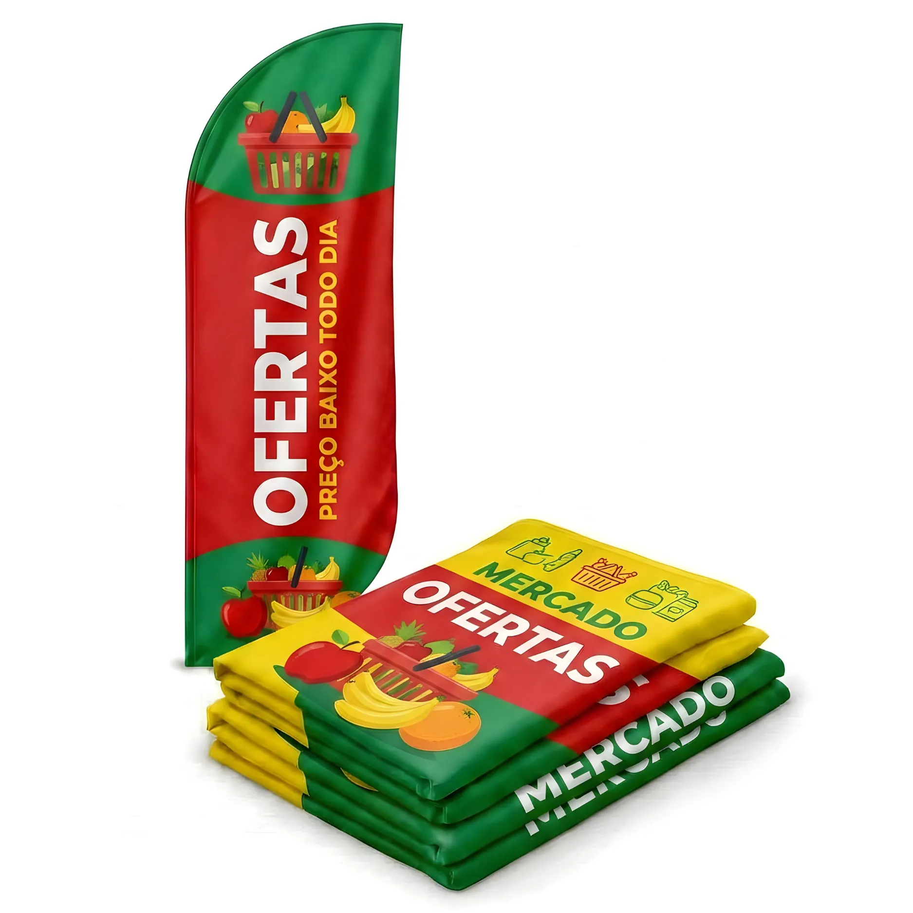 Tecido 100% poliéster para Wind Banner, com impressão Ultra HD Epson, garantindo cores vibrantes e alta definição. Ideal para visibilidade em eventos, feiras e campanhas ao ar livre. Pedidos acima de 20unds, prazo de produção sujeito a alteração (