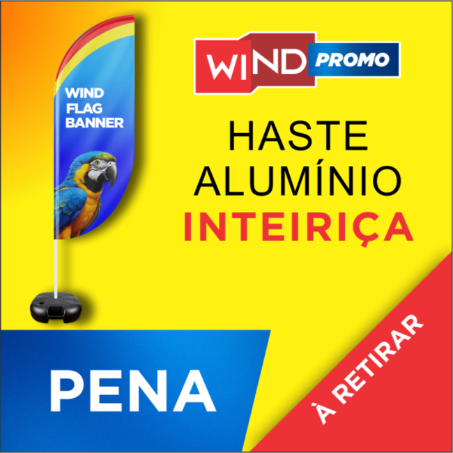 Wind Banner promocional com haste inteiriça e tecido com costura externa, ideal para garantir maior resistência e durabilidade. Perfeito para eventos ao ar livre, feiras e promoções, proporcionando visibilidade e impacto visual. Pedidos acima de 20und